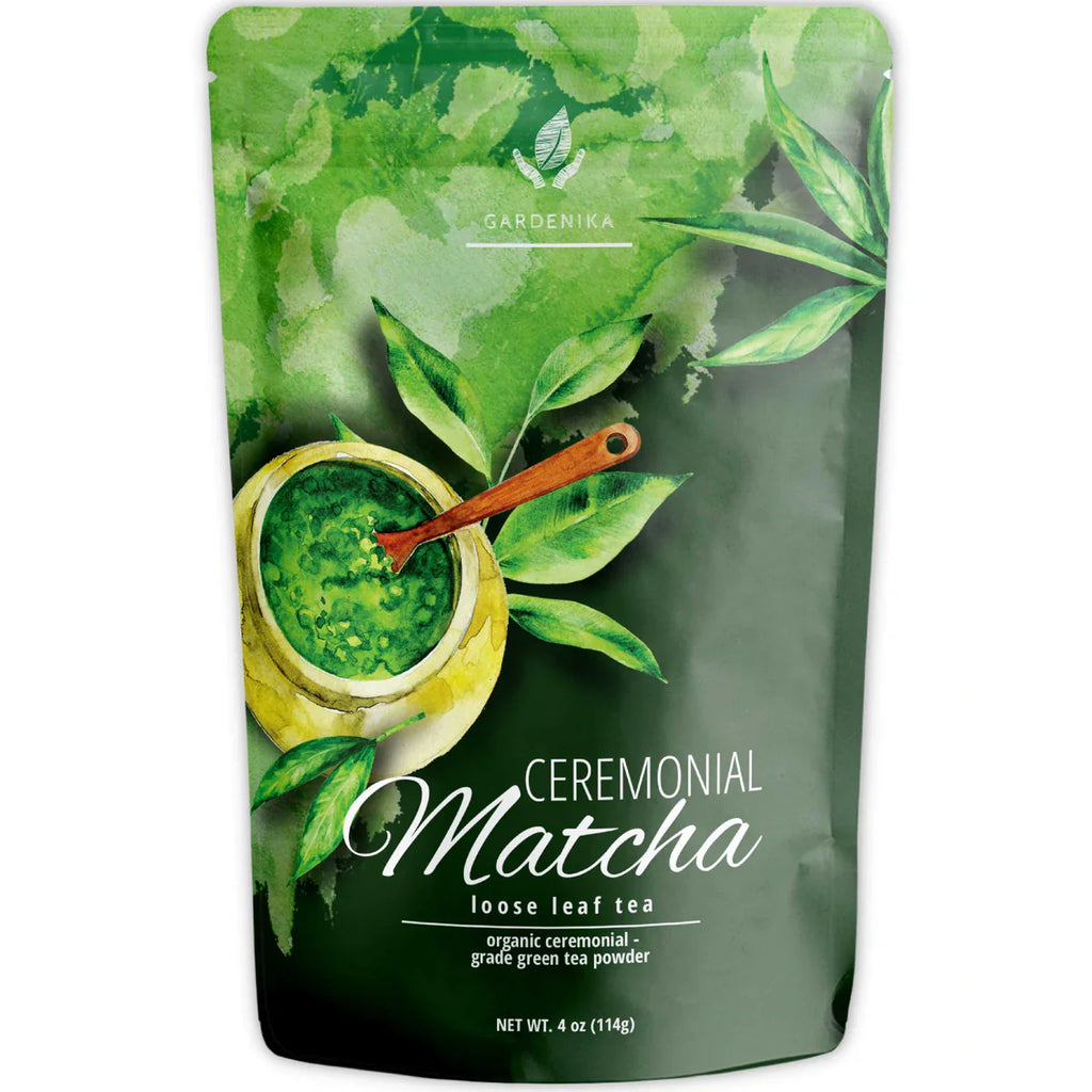 Gardenika Ceremonial Grade Matcha-Grünteepulver, USDA-Bio, 55+ Portionen – 4 Oz (113 g)