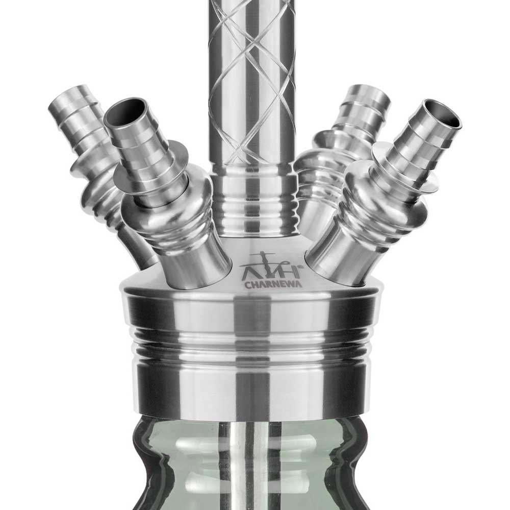 The ATH Charnewa Serhos Hookah is a four-hose pipe made of stainless steel. This hookah is very useful for large groups, as four hoses make it super easy to share.