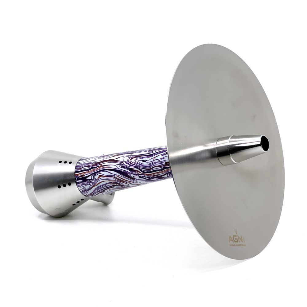 Agni Greece is a stainless steel mini hookah that comes with everything you need to get started: clay bowl, glass base, silicone hose, hose connector, hose handle, spring, tongs, and a built-in adjustable diffuser. This small hookah is 41 cm high, and the whole set, including all accessories, weighs 6.6 lb (3kg).