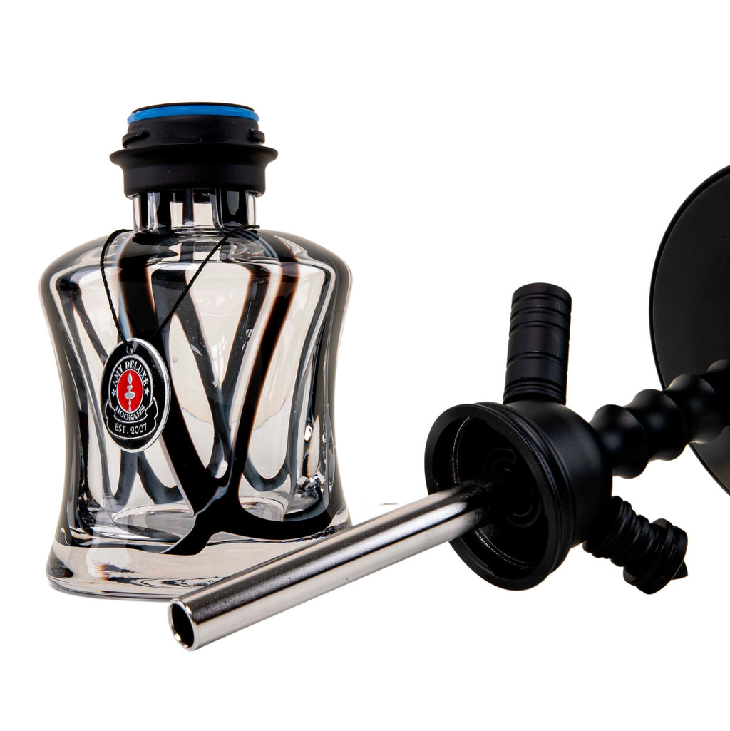 The new hybrid hookah Alu Drum Mini is something for those who are looking for an affordable entry-level model and do not want to compromise on functionality. This hookah features an aluminum smoke column and brass base and a total of 2 connections. The amenities of this model include a ground joint adapter for the hose connection, a smoke column ground joint for quick and easy use of a molasses catcher, a click closure, and a built-in chamber system that provides improved exhaust air transport and air exchange.