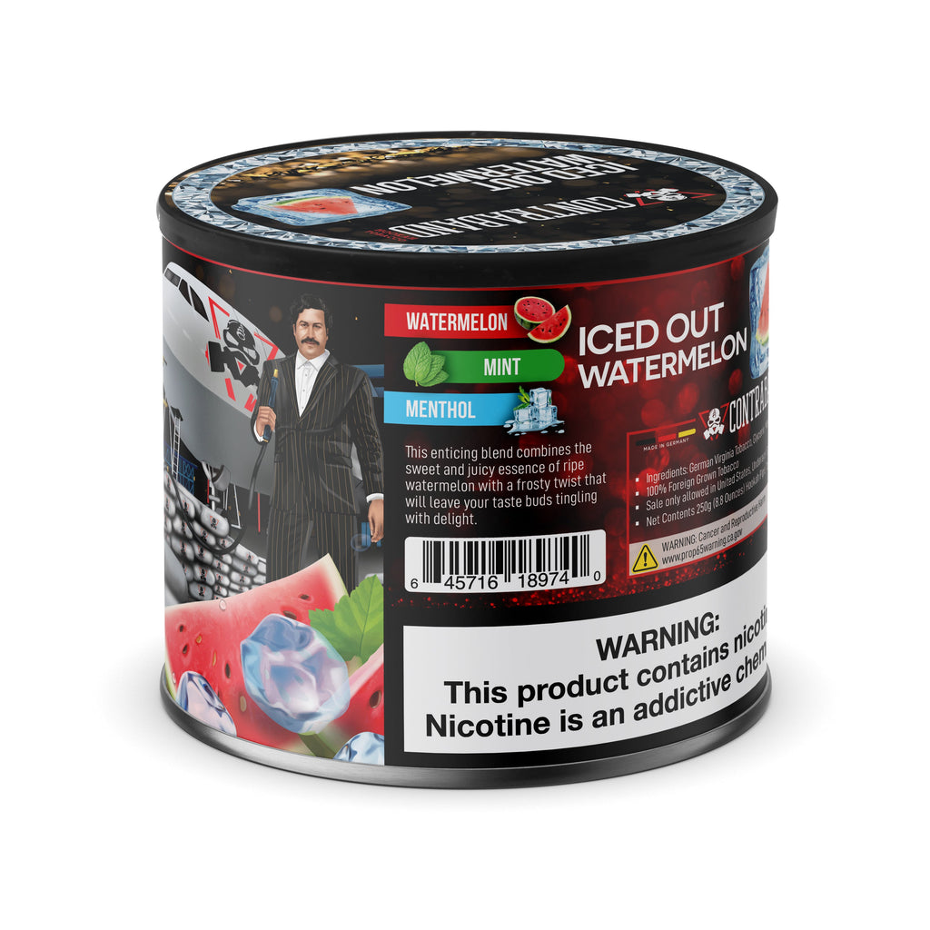 Contraband Iced Out Watermelon Hookah Shisha Tobacco is designed to deliver a smooth and satisfying smoke experience, with each puff releasing dense clouds infused with the tantalizing marriage of watermelon, mint, and menthol. Whether you're a seasoned hookah enthusiast or a newcomer, the Iced Out Watermelon blend invites you to savor the fusion of fruity, minty, and icy elements.