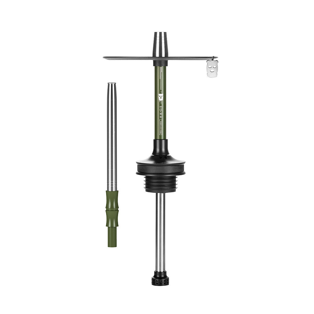 Constructed from stainless steel for the shaft skeleton, immersion tube, and mouthpiece, MISHA promises durability. Its stylish polyacetal base not only enhances its sturdiness but also ensures minimal maintenance. With a removable diffuser for draught personalization and a saucer adorned with striking engravings (plus a branded keychain), MISHA's got flair.