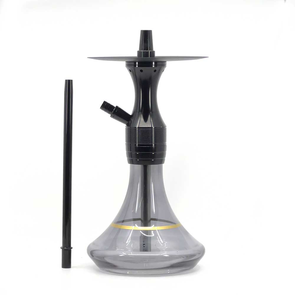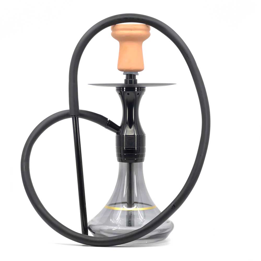 AGNI is a mini hookah that comes with everything you need to get started: clay bowl, glass base, silicone hose, hose connector, hose handle, spring, tongs, and a built-in adjustable diffuser. This small hookah is 41 cm high, and the whole set, including all accessories, weighs 6.6 lb (3kg).