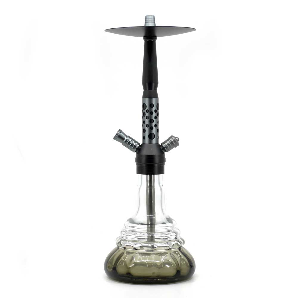 AGNI is a small hookah that comes with everything you need to get started: clay bowl, glass base, silicone hose, hose connector, hose handle, spring, tongs, and a built-in adjustable diffuser. This small hookah is 41 cm high, and the whole set, including all accessories, weighs 6.6 lb (3kg).