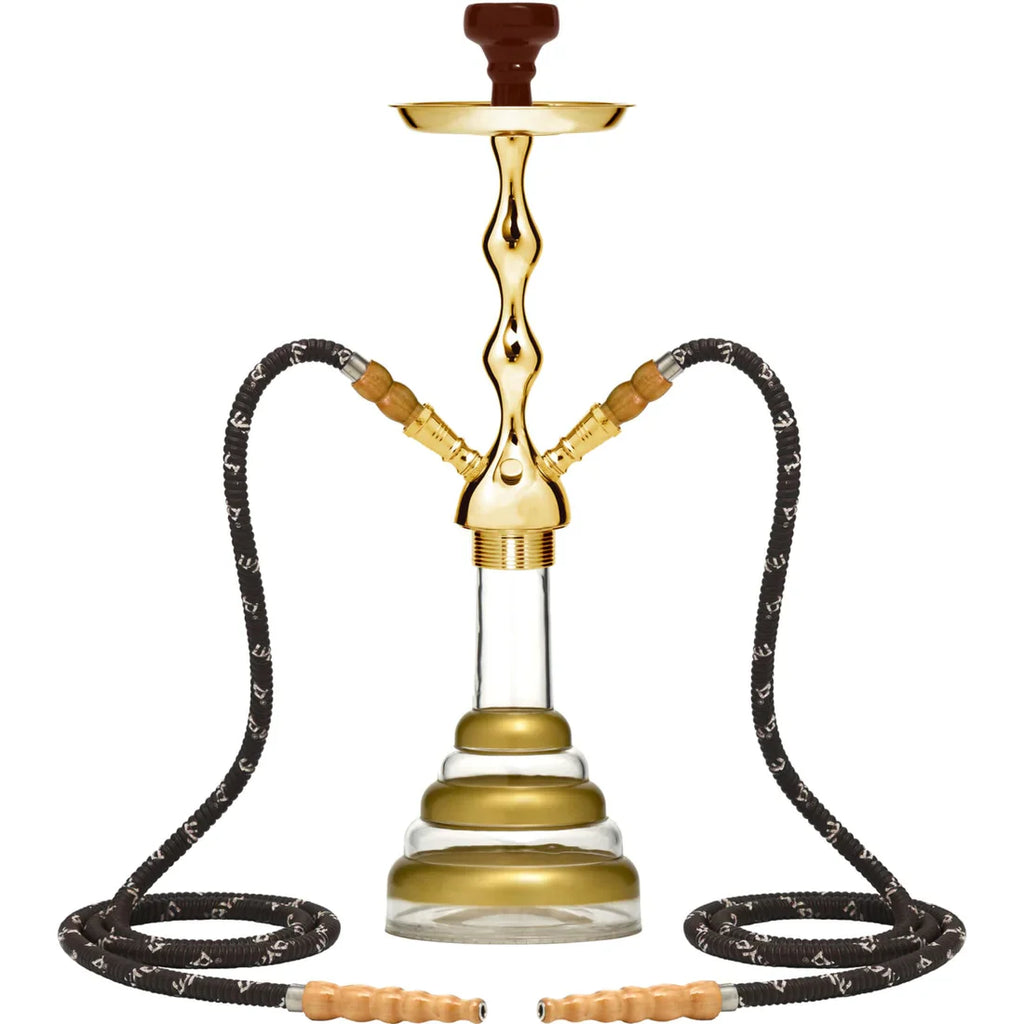 This Acrylic Hookah gives a new experience, a new look, and a new approach to hookahs. At 24" tall, it features a virtually indestructible screw-on base, eliminating the need for base grommets. The base design collects more smoke to insure a superior smoking experience with its clear base and circular colors. It features a solid brass stem that helps to give the best hookah smoking experience. This hookah can be converted into a 4 hose hookah by utilizing Hose adaptors that contain the auto-seal system. The auto-seal system eliminates the need for rubber stoppers and flips caps when there are multiple users. The Acrylic comes with a sturdy blue Mya Hookah box with a handle, tongs, and matching hose.