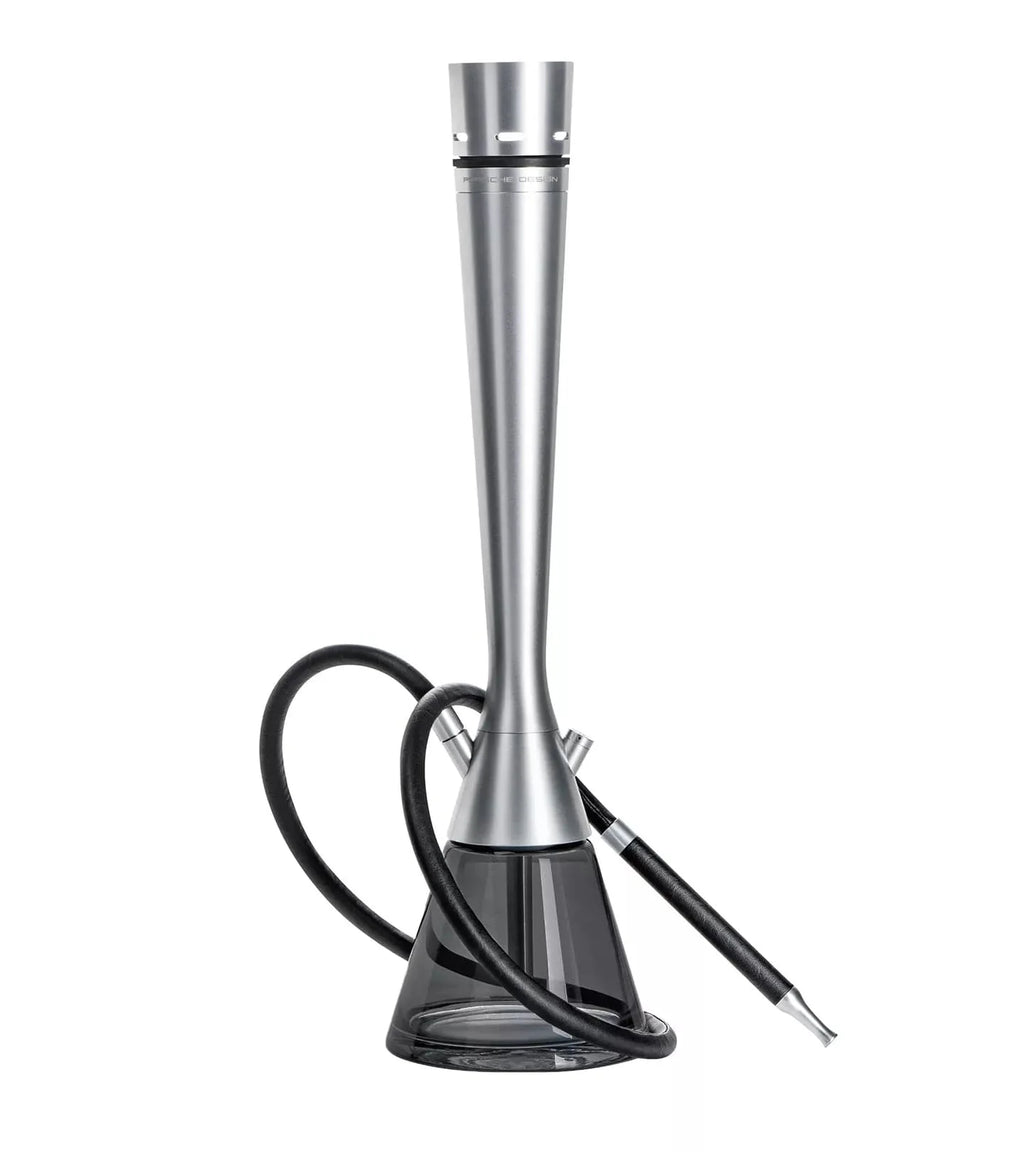 The Shisha 2.1 offers an even more exclusive smoking experience in distinctive Porsche Design iconic style. The bowl is made of solid, hand-blown glass in dark grey color. The brushed, anodized aluminum of pipe steam, base, valve, windshield, and mouthpiece offers an exciting ahead of its time look. The hose in leather optic and the tobacco head out of heat-resistant ceramic add the finishing touch of perfection to this high-end product. The Shisha 2.1 is very easy to clean thanks to its intelligent design. Made in Germany. Total height: ca. 730 mm, width (as well as the bowl diameter): ca. 200 mm.