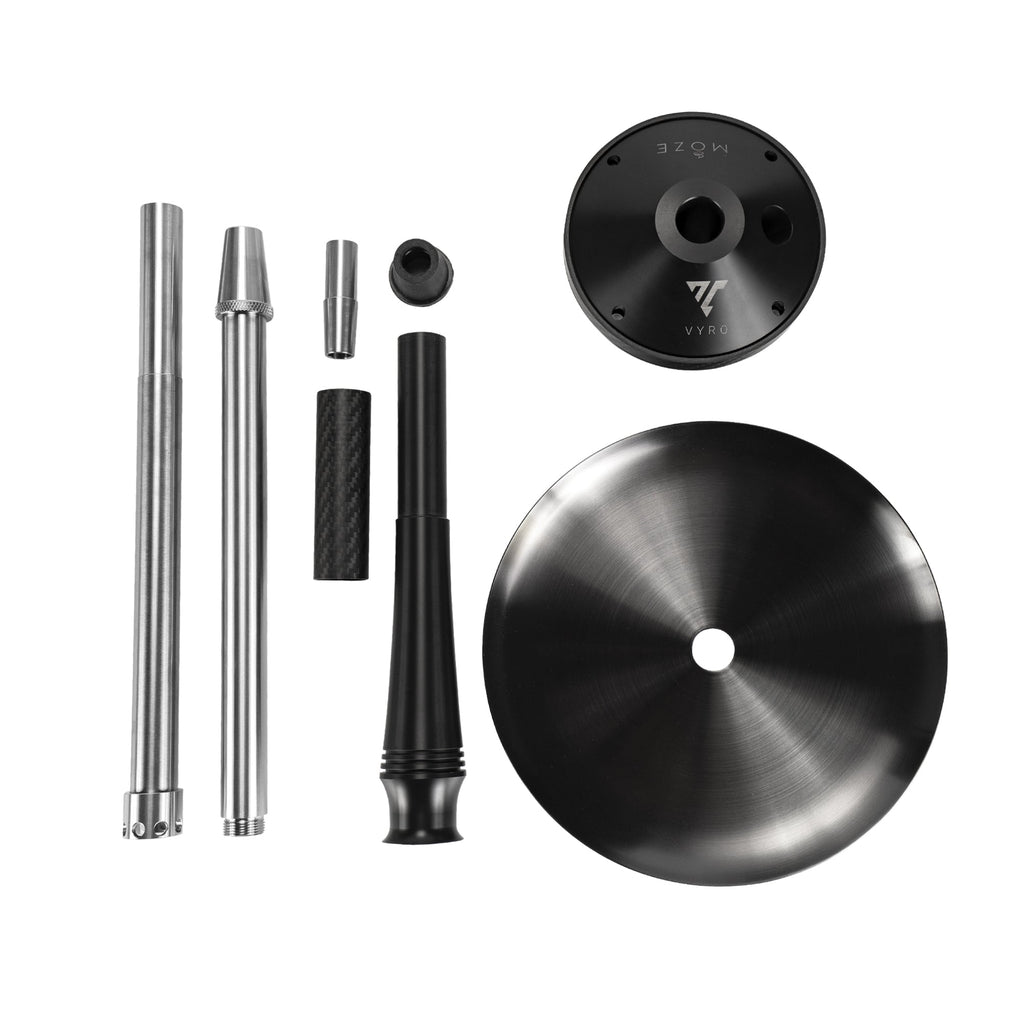 The NOIR is a cooperation of VYRO and Moze. The NOIR is attached to the glass with a rubber. The NOIR is made of POM, real carbon, and V2A stainless steel 1.4301.