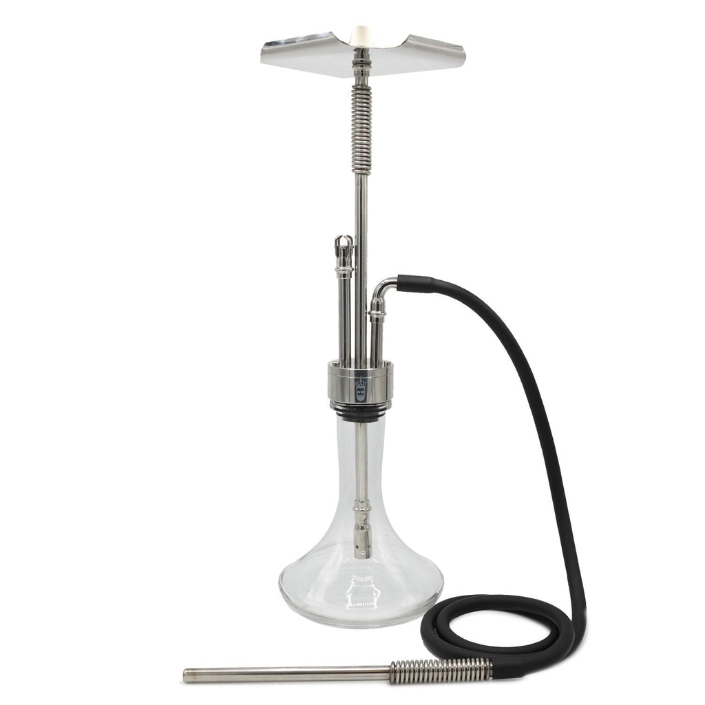 A tall (25.6 inches) and powerful hookah, completely made of AISI 304 stainless steel. A continuation of the line of models with clamp-less attachment to the base. The inner diameter of the shaft is 13 mm, which ensures a light pull. There is no diffuser. Like all VZ Hookah products, the Pro stands out due to its original design in the steampunk style and excellent technical characteristics.
